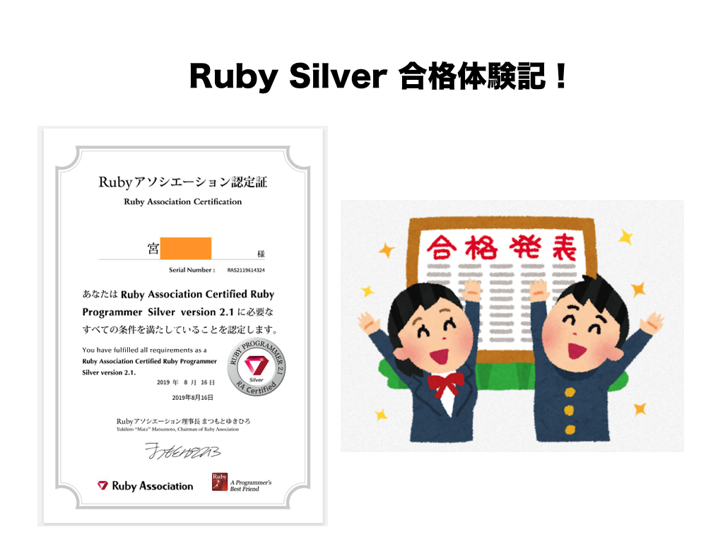 今回は、ずっと取得しようしようと言い続けて8ヶ月が経過してしまったRuby Silverをとうとう取得できたので合格までにやった勉強方法を書いていきたいと思います!